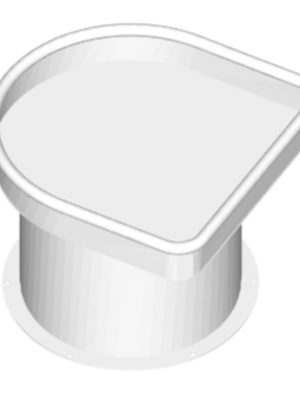 Catchment basin type B in water play equipment are designed to collect water flow and direct it through a single outlet.