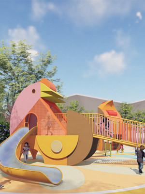 We've integrated elements like mounds of plumage, climbing nets, slides, and wooden pathways into the design.