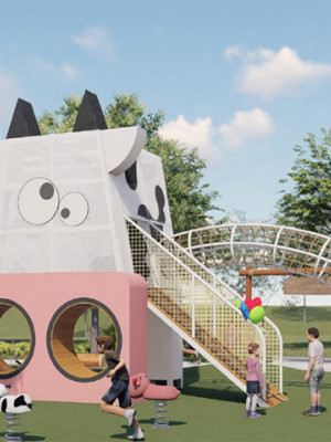 Dairy Cow Play Systems | Stainless Steel Slide | Animal-Shaped Play Equipment | Outdoor Playground Sets | Custom Design